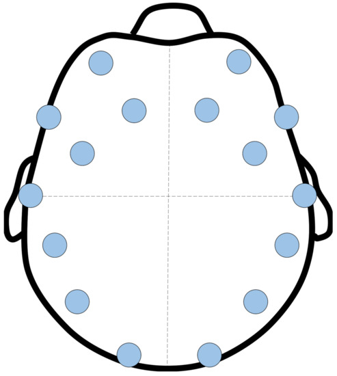 Specifically, Emotiv EPOC has a form of headset with 14 channels that individually collect EEG-signal at a regular interval. Each channel indicates a position in the scalp of an operator for collecting EEG-signal. Specific positions of the 14 channels in Emotiv EPOC are shown in Figure 3. By using Emotiv EPOC API, EEG-signal is collected at a frequency of 6 Hz and from 14 channels according to the international 10–20 electrode standard. Then, it filtered by band pass filter with bandwidth from 2 to 42 Hz and decomposed into amplitude (in micro-volts) of four frequency bands (delta, theta, alpha, and beta) through fast Fourier transformation (FFT). Before the feature extraction, the amplitudes were averaged across the 14 channels and normalized according to each band.