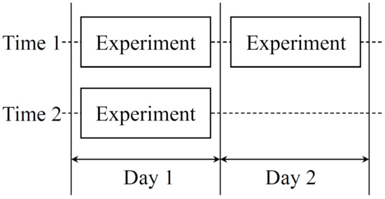 The data acquisition were performed through the following procedure. Before conducting full-scale experiments, subjects were trained for more than thirty minutes to get accustomed to the simulator and equipment. Maneuvering of the selected path was repeatedly performed for three times over two days as the schedule shown in Figure 9. Sufficient intervals between experiments were provided to prevent the effect of tiredness.