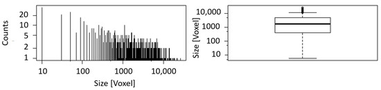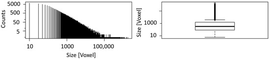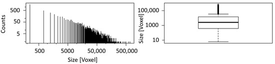 | Number of Blobs | Number of Blobs (≤5 Voxels) | Sum of Blob Size (Voxels) | Rock Size (Voxels) | Volume Fraction |