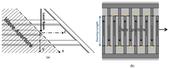 Another approach is to place the substrate at a tilted orientation with respect to the incident laser beam [25,26]. In this case, the beam must land on the edge of a structure erected on the piezoelectric substrate. This allows the in-plane vibration to be detected through LDV. However, the tilt angle creates challenges that increase the complexity of the experimental setup. It is also not applicable for SAWs that have few or no erect structures on the substrate surface, except for the IDT. However, the IDT thickness is usually in the sub-micrometer scale [27,28], which is small in comparison with the laser beam spot size.