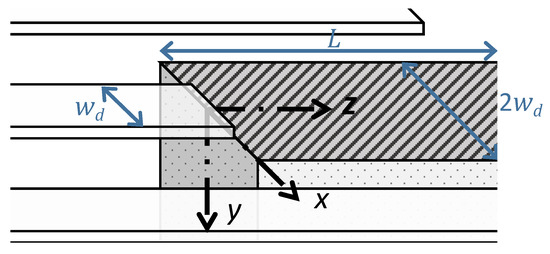 The region under study was a cuboid sector of the substrate bounded by the fingertip and the substrate edge (Figure 2). The distance between those boundaries was on the order of L = 2 mm. The finger width was = 10 m and the total width of the region under study was , with a margin of on either side of the finger. The substrate was made of Navy Type I Lead Zirconate Titanate I (PZT4) with a Young’s modulus of GPa and a Poisson ratio of . The thickness was set to mm to match that of the fabricated substrate. This region was meshed in the Finite Element Model (FEM) using 60,344 tetrahedral elements with 20,230 mesh vertices.