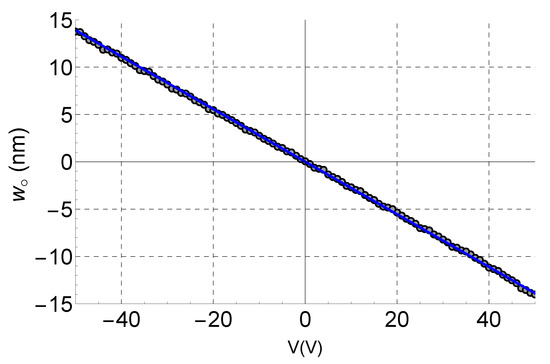 The relationship between displacement and applied voltage was found to be linear for PZT4, as shown in Figure 7. This is in agreement with the literature on the small-displacement response of piezoelectric materials [41], thereby further validating the proposed technique. It is also in agreement with the linear relationship (Equation (3)) predicted through FEA.