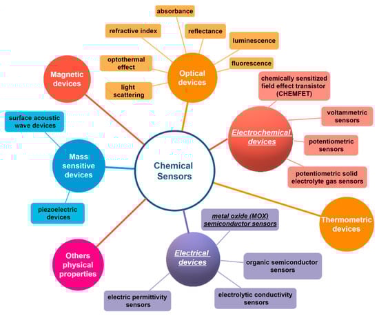 The popularity of sensor devices to detect gases is due to the increased development of solid-state sensors, the miniaturization of gas detection devices and the micro electro-mechanical system (MEMS) technology advent. Indeed, compared with conventional analytical instruments such as gas chromatography (GC) and high-performance liquid chromatography (HPLC), chemical sensors are less costly, easier to operate and capable of online real-time identification.