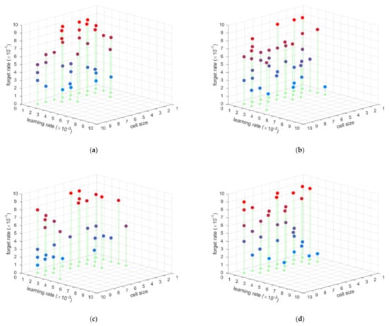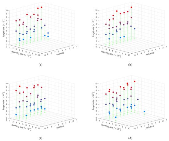 To select appropriate hyperparameters such as the batch size, cell size, learning rate, and forgetting rate, we performed many simulations with different hyperparameters in this section.