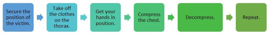 Figure 2 shows a six-step methodology when applying the standardized cardiopulmonary resuscitation technique. In this way these steps are the following: