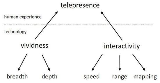 - Steuer, J. Defining virtual reality: Dimensions determining telepresence. J. Commun. 1992, 42, 73–93. [Google Scholar] [CrossRef]