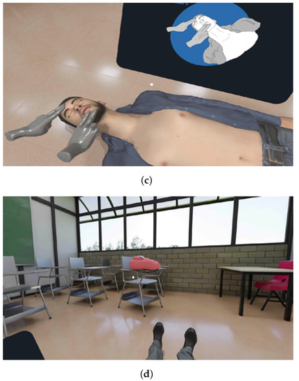- Liyanage, S.U.; Jayaratne, L.; Wickramasinghe, M.; Munasinghe, A. Towards an Affordable Virtual Reality Solution for Cardiopulmonary Resuscitation Training. In Proceedings of the 2019 IEEE Conference on Virtual Reality and 3D User Interfaces (VR), Osaka, Japan, 23–27 March 2019; pp. 1054–1055. [Google Scholar] [CrossRef]