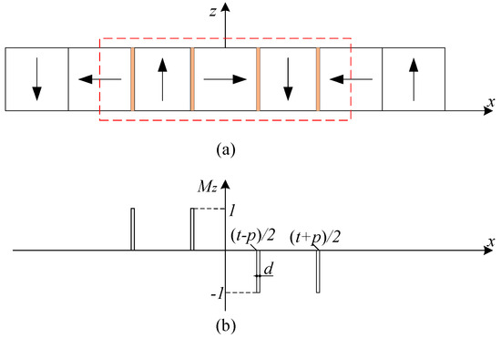 The magnet array and magnetization distribution: (a) cross-section of the magnet array; (b) Mx projection distribution.
