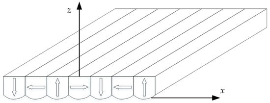 Linear and planar motors can directly convert electric energy into linear motion mechanical energy without any transmission device of intermediate conversion mechanism [1,2]. They have the advantages of compact structure, high transmission stiffness, fast dynamic response, and high positioning accuracy due to the absence of mechanical conversion parts, and are extensively used in various fields, such as logistics delivery systems, computer numerical control (CNC) machine systems, lithography, and magnetically levitated train systems. The magnetic field on one side of the 1D Halbach permanent magnet array is significantly enhanced due to the arrangement of permanent magnets and has good sinusoidal characteristics. Therefore, the 1D Halbach magnet array is widely applied in linear, planar, and other motors [3,4,5,6,7,8].