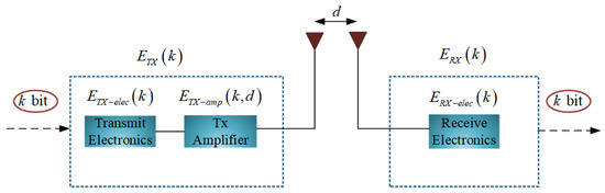 Assuming that each packet has k bit data, the energy consumption of transmitting k bit data and the energy consumption of receiving k bit data can be expressed as follows: