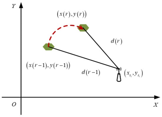 where, is the coordinate position of the mobile sink at the beginning of the round; is the position change of the mobile sink from the round to the round.