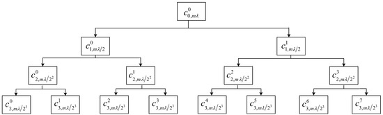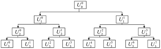 Suppose that the bearing signal belongs to , WPT can decompose in the form of a binary tree. The principle of WPT can be described, as follows [34].