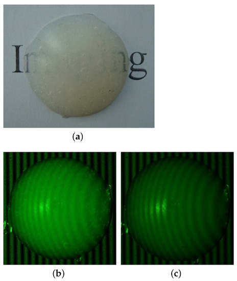 A spherical cap as an observed target, as shown in Figure 3a, is employed for illustrating the use of polarization technique. The spherical cap was made of room-temperature vulcanized silicone rubber using two-component-addition molding. The real part of refractive index of silicone rubber at 532 nm is about , which is similar to that of human skin [29].