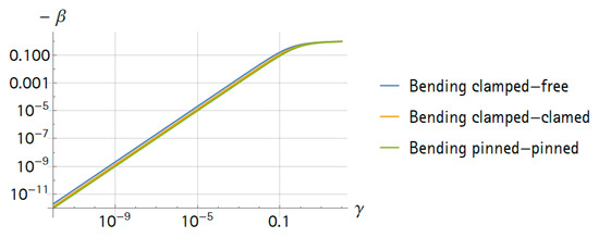 In the special case that the mass ratios were much smaller than one, all frequency ratios were very similar and was in the same order of magnitude as the mass ratio. The results for the bending frequencies are summarized in Figure 2. For small mass ratios, the function was linear, and for larger mass ratios (), the approximation of the point mass was insufficient.
