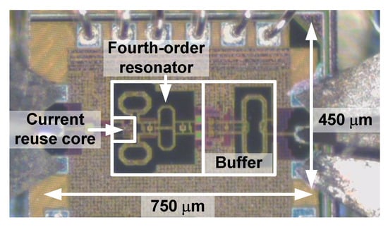- Yun, S.J.; Shin, S.-B.; Choi, H.-C.; Lee, S.-G. A 1mW Current-Reuse CMOS Differential LC-VCO with Low Phase Noise. In Proceedings of the 2005 IEEE International Solid-State Circuits Conference (ISSCC) Digest of Technical Papers, San Francisco, CA, USA, 11–15 February 2005; pp. 540–541. [Google Scholar]