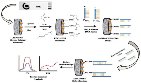 2.4. Fabrication of the AuN/CNFs DNA Sensor