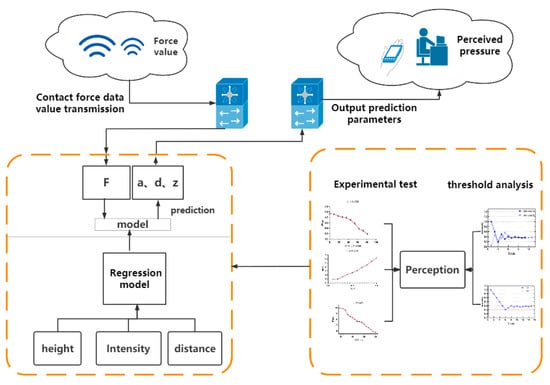 The entire sound field force feedback system is shown in Figure 11. The robot end inputs the force information and position information of the interaction end into the force feedback system and then constructs a good regression model to output the predicted value to the ultrasonic tactile feedback system to control the ultrasonic tactile feedback system. The ultrasonic tactile feedback system provides a specific magnitude of force feedback corresponding to the input force for the operator’s perception.