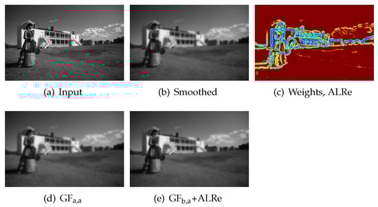 Edge-preserving smoothing aims to erase weak edges but preserve strong ones from images. As an edge-preserving filter, GF has the problem of halo-effects. Various methods have been proposed for this problem and various weights have been investigated as described in Equation (3).