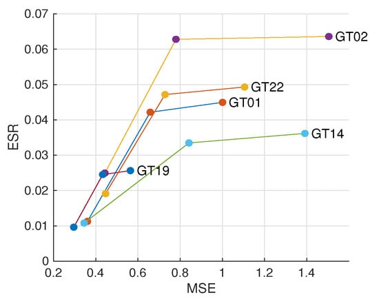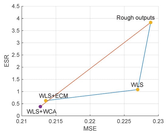 The results of each sample are displayed in Figure 8. The y-axis is ln(ESR). As can be inspected, WMF introduces significant boosts on both edge consistency and accuracy, and ALRe is able to introduce further improvements. An example of this small but stable improvement is displayed in Figure 9. As can be observed in Figure 9c,d, WMF with ALRe produces less spikes.