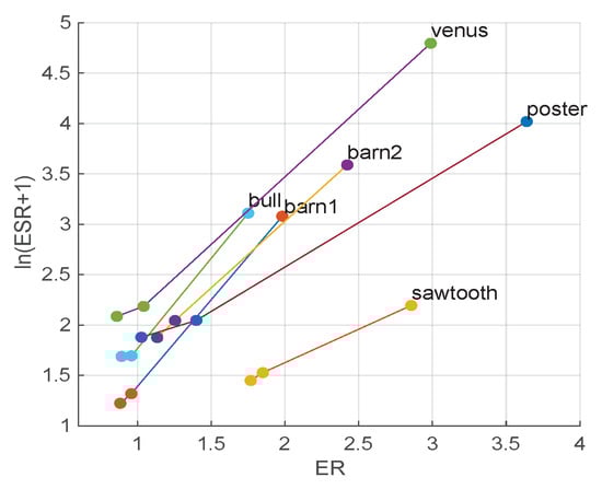 In the first part, D-HAZY [31], Middlebury [32] and Alpha Matting [33] datasets are employed (They are public datasets. The permissions can be found on the dataset websites. D-HAZY: http://ancuti.meo.etc.upt.ro/D_Hazzy_ICIP2016/ (accessed on 5 April 2021); Middlebury: https://vision.middlebury.edu/stereo/data/ (accessed on 5 April 2021); Alpha Matting: http://www.alphamatting.com/index.html (accessed on 5 April 2021)).Comparisons are made based on rough outputs, refined outputs without ALRe and refined outputs with ALRe. The index used to measure edge consistency is ESR (mean edge strength ratio).