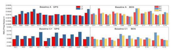 To confirm this possible reason, we furthermore calculated the RMS of posterior phase residuals of the float solutions of the baseline A and C1 and depicted on