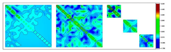 Figure 6, from left to right are the two-dimensional diagram of the ambiguity cofactor matrix after Z-transformation of the 33rd epoch obtained from the three schemes: S1, S2 and S3. For S3, there are three blocks with respect to the EWL, WL and B1 ambiguities, as they are fixed in three sequential steps, and the cofactor matrices are based on the updated solution by introducing the integer ambiguities fixed in the previous blocks. The colors represent the values of the corresponding matrix elements and non-diagonal elements illustrate the correlations of the ambiguities. Therefore, after Z-transformation, the smaller the non-diagonal elements, the higher the degree of diagonalization of the matrix, and the better the effect of correlation reduction.