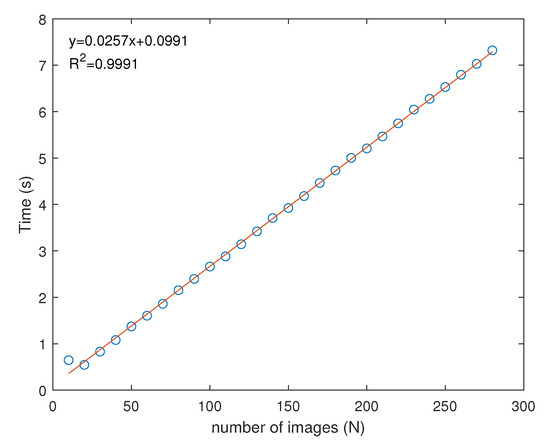 To create the depth-maps from the original images, we have used the Modified Gray Level Variance (GLVM) implementation in Matlab by Pertuz [20] and tested the processing speed for a different amount of images. The results of this can be seen in Figure 5. From this graph, it is clear that the processing time has a linear relationship with respect to the number of images.