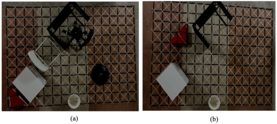 Worksapces tileset arrangements: (a) scenario 1 environment; and (b) scenario 2 eviroment.