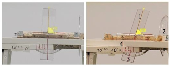 - After this, the sagittal plane goniometer was moved from 20° behind to 19° behind, and two photographs of the transverse plane were again taken (one at 0° and the other at 20°).