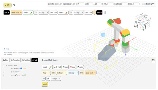 - Assembly—A Web Based Robot Programming and Simulation Environment. Available online: https://assembly.comemak.at (accessed on 26 February 2021).