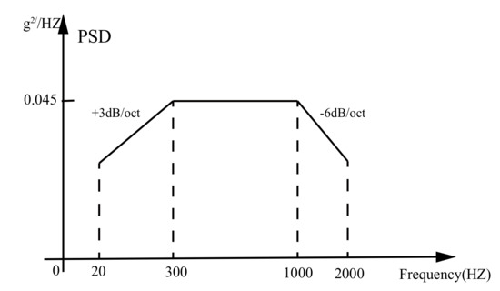 Guided weapons generally experience storage, transportation, and flight environments after their production cycle. During flight, the high-speed turbulent flow field formed around the projectile due to high-speed flight induces complex vibration, overload, high temperatures, and other environments [32]. The vibration environment has a greater impact on the structure of the projectile and may even cause deformation of the projectile or shedding of solder joints on the circuit board. The vibration of guided weapons during flight can be divided into two categories: 0–2000 HZ, low-frequency noise excited by vibration mainly transmitted by mechanical structures, and 10–10,000 HZ noise excited by frequency range. Among them, vibration excitation noise has an obvious effect on the mass-spring structure, and excitation noise mainly has an obvious effect on the plate and shell structure. Therefore, the main focus of this paper was the impact characteristics of the frequency range 0–2000 HZ by vibration excitation noise on the output of the inertial navigation system.