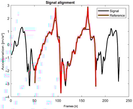 Visualization of the DTW alignment of the walking reference snippet to an input signal.