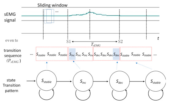 Figure 7. Example of the identification process of a state transition pattern in the surface electromyography (sEMG) transition sequence.