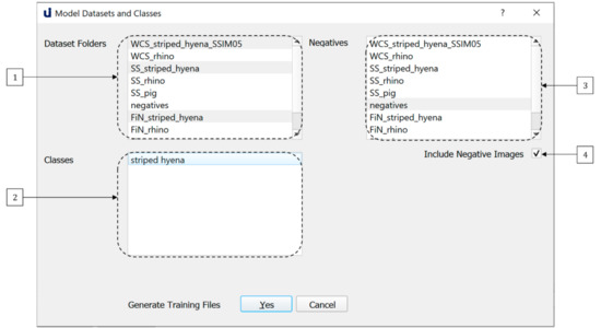 If the results attained by the default models are not sufficiently accurate for the user’s purposes, or the models are not sufficiently specific to the user’s domain, they may elect to custom train their own model or models. They may choose to use publicly available images such as FlickR and iNaturalist (FiN) images, infused with camera trap images as proposed by [31] or they may alternatively train using images from any source, including publicly available images, and/or their own trap images. It is strongly recommended that users use negative sampling when training custom models because negative sampling has been shown to significantly improve the ability of a model to discriminate between positive and negative objects [34]. Negative sampling refers to the inclusion of unannotated non-target objects, which share similarities with the target class, in the training set. For example, if an object detector Is being trained to detect feral dogs, negative samples of similar animals such as foxes and feral cats should be included in training.