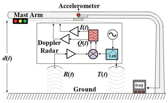 - Rodrigues, D.V.Q.; Tang, Z.; Wang, J.; Zuo, D.; Li, C. Structural Health Monitoring of a Traffic Signal Support Structure Based on 5.8-GHz Doppler Radar with Median Filter and Revised Circle Fitting. In Proceedings of the IEEE Radio and Wireless Symposium (RWS), San Antonio, TX, USA, 26–29 January 2020; pp. 187–190. [Google Scholar]