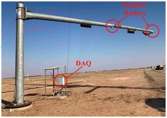 Experimental setup. The low-cost Doppler radar array and the data acquisition instrumentation are highlighted [72].