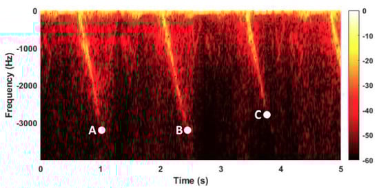 Spectrogram for a faulty three-blade wind turbine obtained from 5.8-GHz Doppler radar measurements. Reprinted with the permission from ref. [94]. Copyright 2021 IEEE.