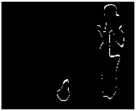 The result shown in Figure 4 is a binary image. The pixels of the objects that appear in the three images are the foreground pixels. They also have varied positions.