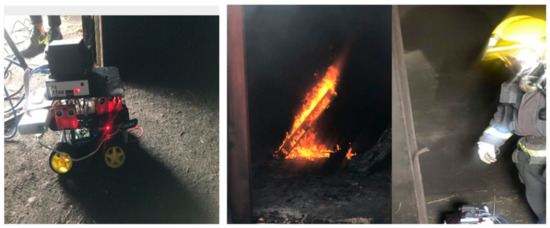 There are some solutions to improve a firefighter’s services in emergencies [9]. In monitoring and sensing, students at the University of Missouri S&T have created FREAS [10], which sends data to the fire department during an intervention. It is therefore crucial to collect information from the environment in the moments prior to the intervention of fire fighters, and also prior to the autonomous navigation [11]. The information obtained from the environmental state is helpful for operational tactics. Moreover, to improve the environmental acquisition, the inclusion of images from the environment could offer relevant information. Most solutions usually use RGB cameras to explore the indoor environment [12]. However, those solutions cannot be applied indoors with no visibility.
