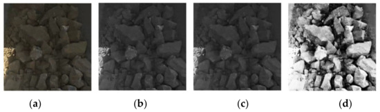 We choose a bilateral filter to process the grayscale ore images for noise reduction and ore boundary information preservation at the same time. Lastly, contrast-limited adaptive histogram equalization (CLAHE) was used to enhance the contrast between the ore and background, as well as to make the boundary of ores more distinct. The raw image and its preprocessed results are shown in Figure 3.
