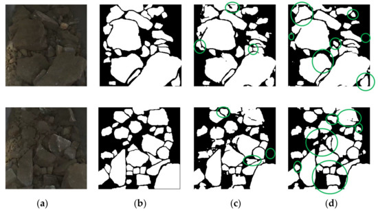 The traditional ore particle size detection methods, including artificial screening and physical settlement, have strong adaptability and are widely used. However, they consume enormous human resources, and the detection results are easily affected by workers’ subjective factors. In recent years, automatic detection methods of ore particle size based on traditional image processing have been proposed, and there have been significant breakthroughs, including watershed and its improved methods [1,2,3,4], threshold segmentation method [5,6], and segmentation method based on specific theory [7] are the main measures. However, these methods rely on tedious parameter tuning processes to obtain satisfactory results and are difficult to generalize to different scenarios.