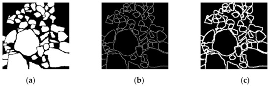 Mask label and two different boundary labels: (a) the mask label; (b) the canny boundary label; and (c) the dilated boundary label.