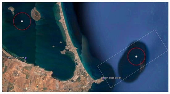 As mentioned in the Introduction, the complexity of autonomous surveillance varies significantly in different scenarios in the Spanish Network of Marine Reserves. The Cabo de Palos and Islas Hormigas Marine Reserve [52] in the Region of Murcia (Figure 14) has medium complexity according to the previously defined criteria. This reserve covers an area of 18.98 km2. This marine reserve is very near the Mar Menor, the largest saltwater lagoon in Europe, which was selected as the scenario for the case study because the water there is usually calm and winds are light, more suitable to BUSCAMOS-VIGIA prototype vessel (Figure 14).