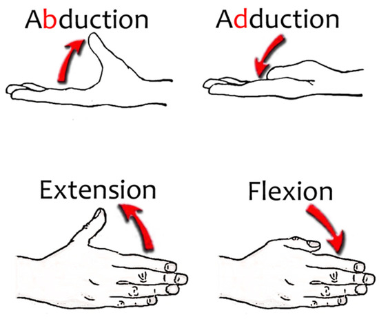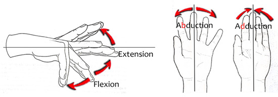 The features of smart gloves are closely related to the anatomy and physiology of the human hand. The concept of degree of freedom (DoF) is particularly important [14,15,16], which refers to the different basic movements that can be performed with the hand and fingers. More complex movements can be performed as combination of basic ones.