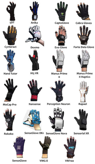 - Flex sensor-based technologies, referencing the commercial ones: CyberGlove III (CyberGlove Systems LLC, San José, CA, USA), 5DT Data Glove (Fith Dimension Technologies, Orlando, Fla., USA), X-IST Data Glove (SouVR International Trading Co. Ltd., Beijing, China) and DG5 VHand 2.0 Data Glove (DGTech Engineering Solutions, Bazzano, Italy).