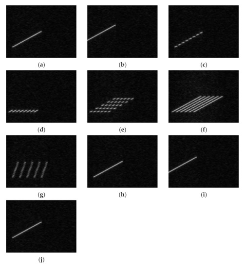 The darker parts in Figure 5 are signal echoes, and the brighter parts are jamming signals. From Figure 5, it can be seen that after the echo signal was added, the PDTJ shown in Figure 5d and the WDTJ shown in Figure 5f were clearly distinguished, and the two types of jamming could be separated. However, it can also be seen from the Figure that after the echo was added, the distance false target jamming shown in Figure 5a and the distance gate drag jamming shown in Figure 5h were still inseparable. The speed false target jamming shown in Figure 5b and the speed drag jamming shown in Figure 5i were also inseparable. To distinguish false target-type jamming from towing-type jamming, a comparison of different inter-pulse jamming parameters is needed. Therefore, if only the time–frequency diagram of a single pulse is used as an input, it is not possible to correctly identify whether it is towing jamming or false target jamming.