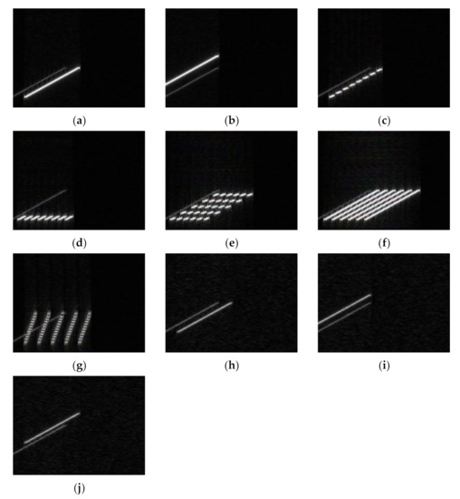 Time–frequency diagram of jamming signals. (a) RFTJ. (b) VFTJ. (c) ISDJ. (d) PDTJ. (e) ISRJ. (f) WDTJ. (g) SMSP. (h) RGPO. (i) VGPO. (j) R-VGPO.