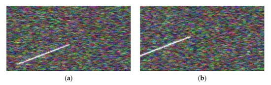 One of the most difficult problems in spoofing jamming identification is the identification of jamming in the case of a low JNR. Figure 7 shows the results of distance false target jamming STFT and speed false target jamming STFT when the JNR was −10 dB.