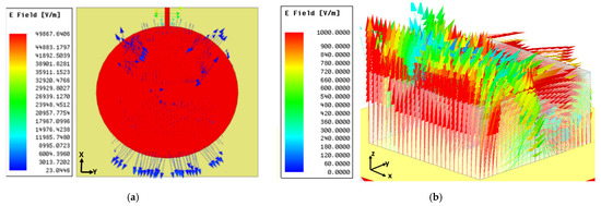 Electric field distribution over (a) metallic circular patch (b) DRA.