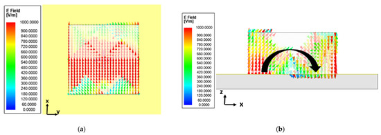 Electric field distribution over DRA (a) XY Plane (b) XZ Plane.